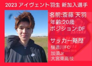 この度、斎藤 天羽選手が2023年から新たに加入することが決まりましたのでお知らせいたします。